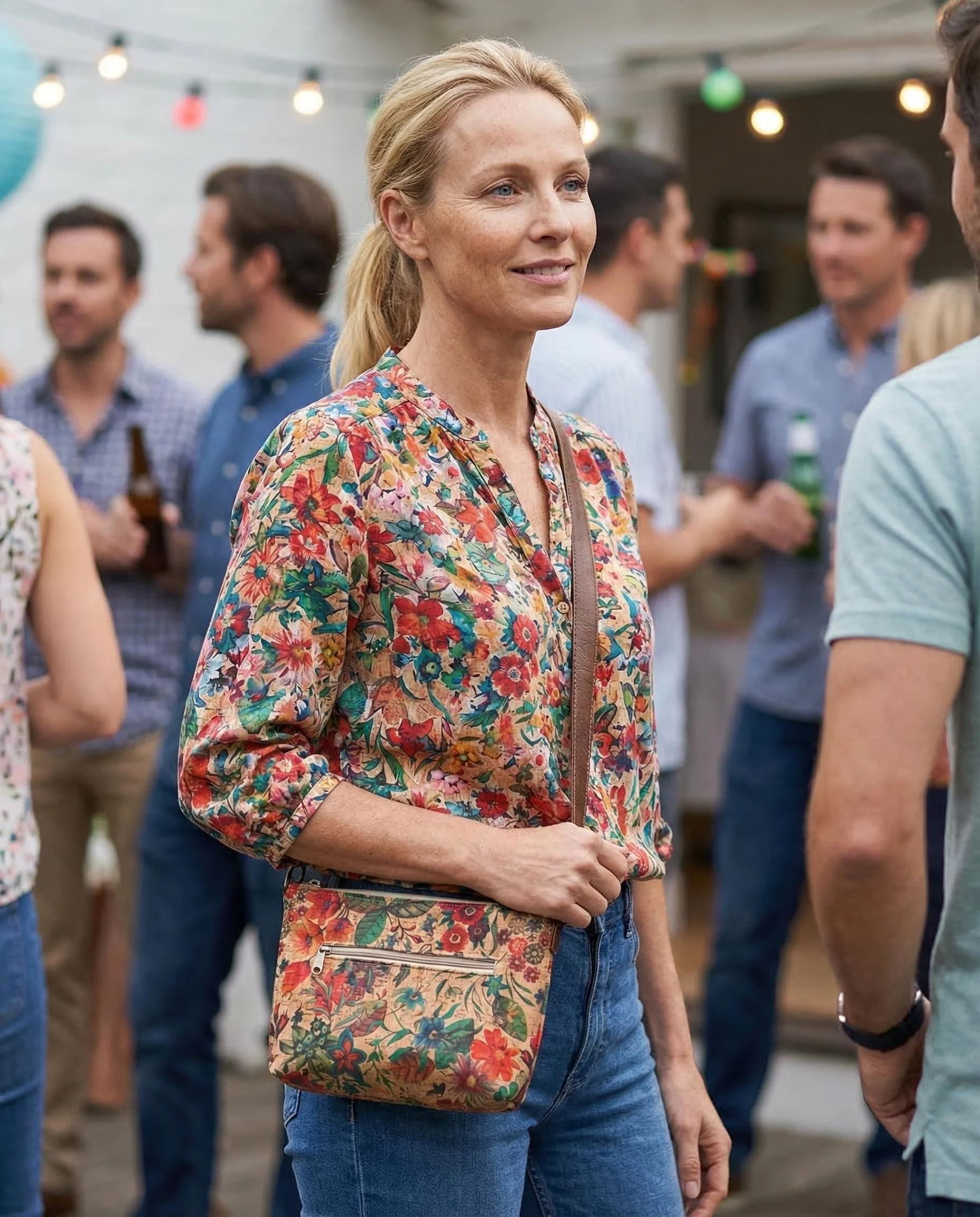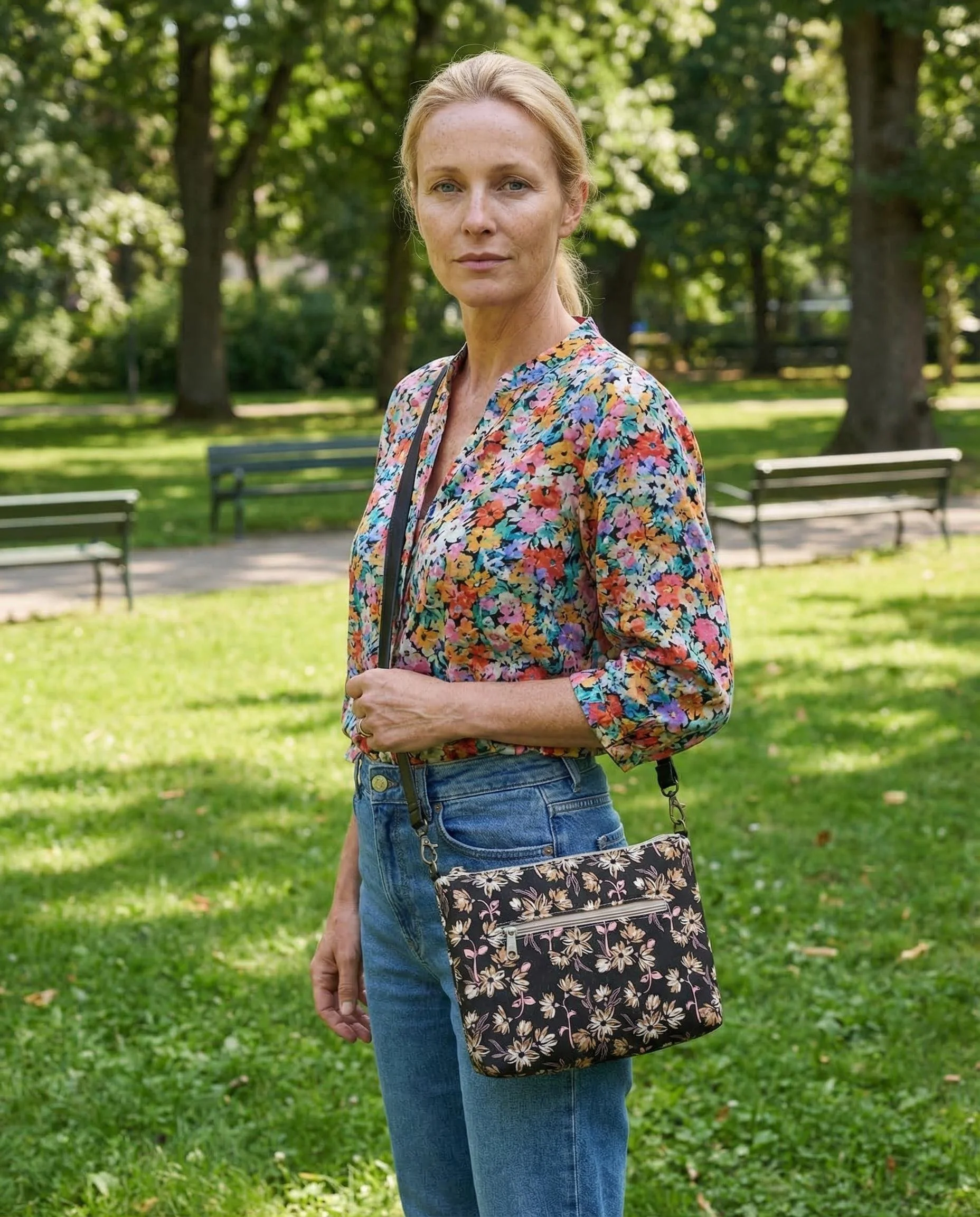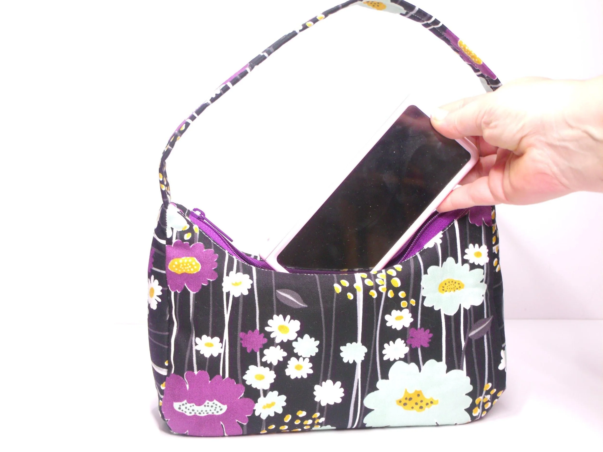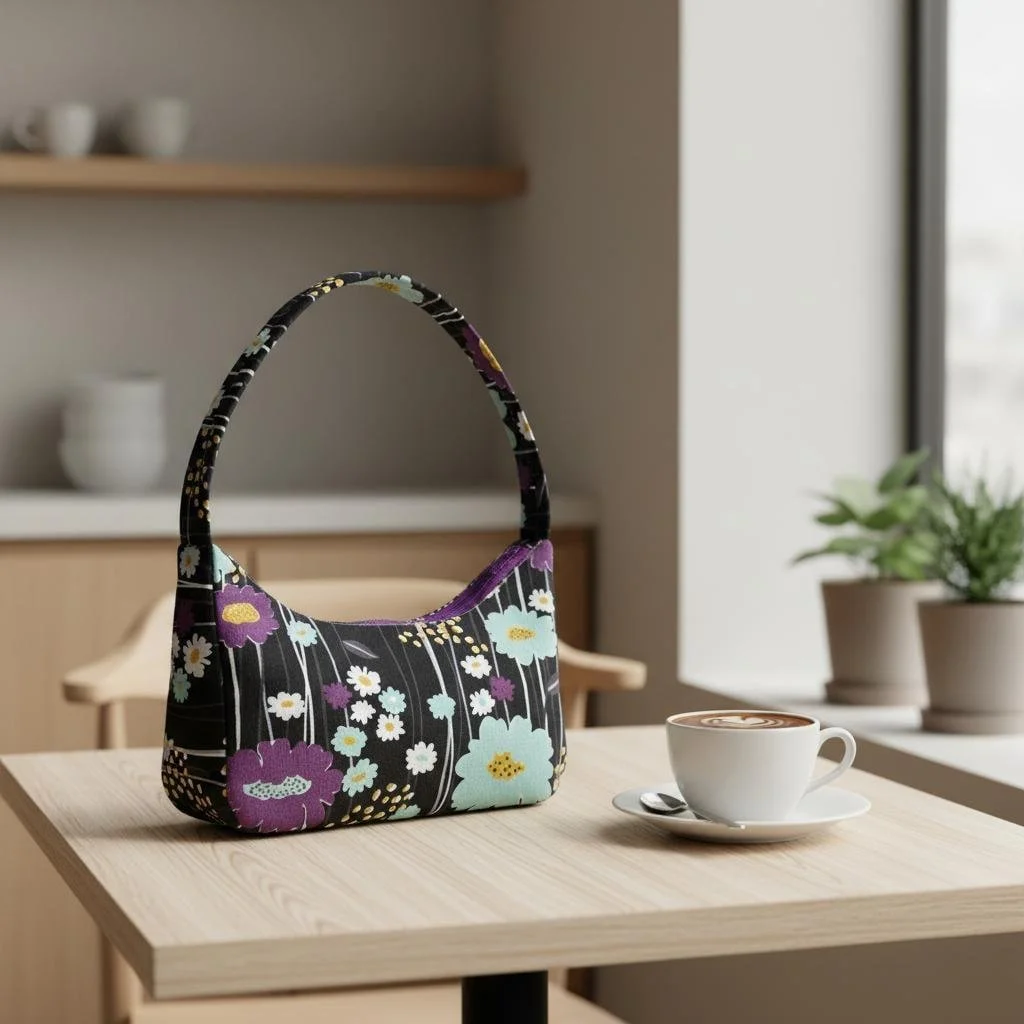 Floral Cotton Crossbody Bag handmade as a Small Shoulder Bag designed for lightweight everyday wear. This Cotton Purse features a zipper closure and makes a cheerful Everyday Bag and thoughtful Gift for Her.